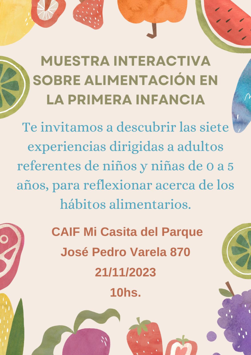 El CAIF Mi Casita del Parque de Sarandí Grande está preparando una muestra interactiva sobre alimentación en la primera infancia. La exposición, dirigida a adultos referentes de niños y niñas, tiene como objetivo reflexionar acerca de los hábitos alimentarios y será inaugurada el 21 de noviembre a las 10:00 horas.