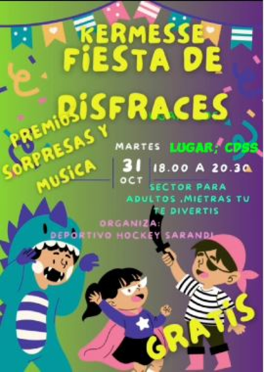 El próximo martes 31 de octubre, los equipos de hockey del Club Deportivo y Social Sarandí de Sarandí Grande celebrarán una kermess de disfraces en las instalaciones de la institución.