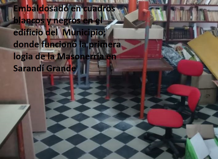 Según un informe audiovisual del 2021 del historiador floridense Carlos Pérez D'Auria del Grupo de Estudios Históricos y Culturales Florida, que Sarandí 365 comparte también al final de éste artículo, la primera logia masónica de Sarandí Grande funcionó en una casa de ubicación desconocida hasta que en 1926 se construyó la casa en la que funciona actualmente el Municipio de Sarandí Grande en Fontes Arrillaga y Alfredo Sanjuan (ex Sarandí), frente a Plaza Pisón; donde aún persisten del antiguo templo masón el típico embaldosado en cuadros blancos y negros y la pequeña pieza destinada a las reflexiones previas al rito de iniciación en la Masonería. Existen también claras referencias al funcionamiento allí de ésa logia, aunque sin mencionar expresamente a la Masonería, en el libro Historia de Sarandí Grande del Dr. Alfredo Sanjuan; que desde octubre del año pasado está disponible en internet a través de éste enlace (click aquí para ver ése libro en línea).