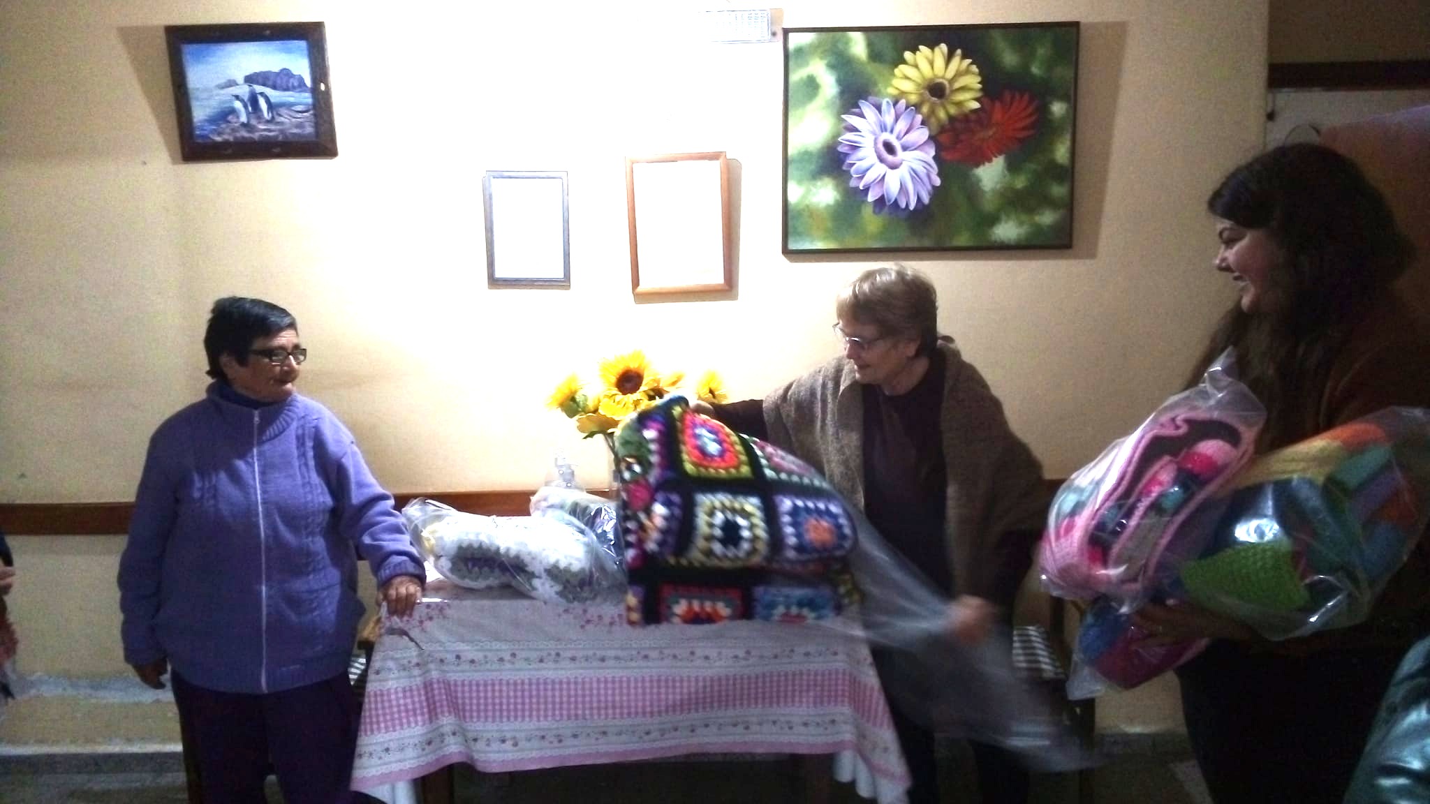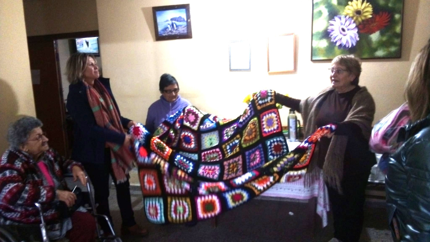 Abrigadas mantas tejidas a mano fueron entregadas hoy en el Hogar de Ancianos Alfredo Sanjuan y a los residenciales Lo de Estela en Sarandí Grande, en el marco del programa Tejiendo Sueños de la Dirección de Desarrollo de la Intendencia Municipal de Florida.