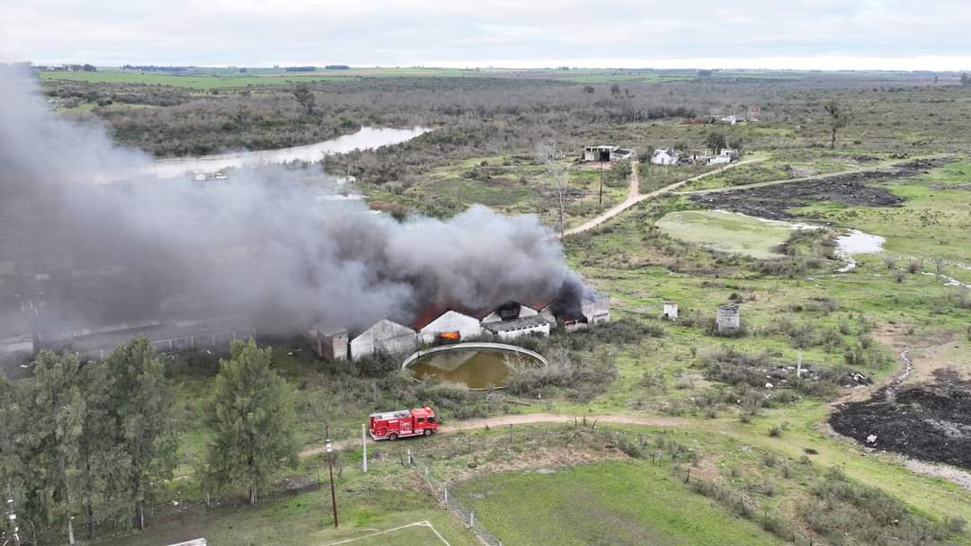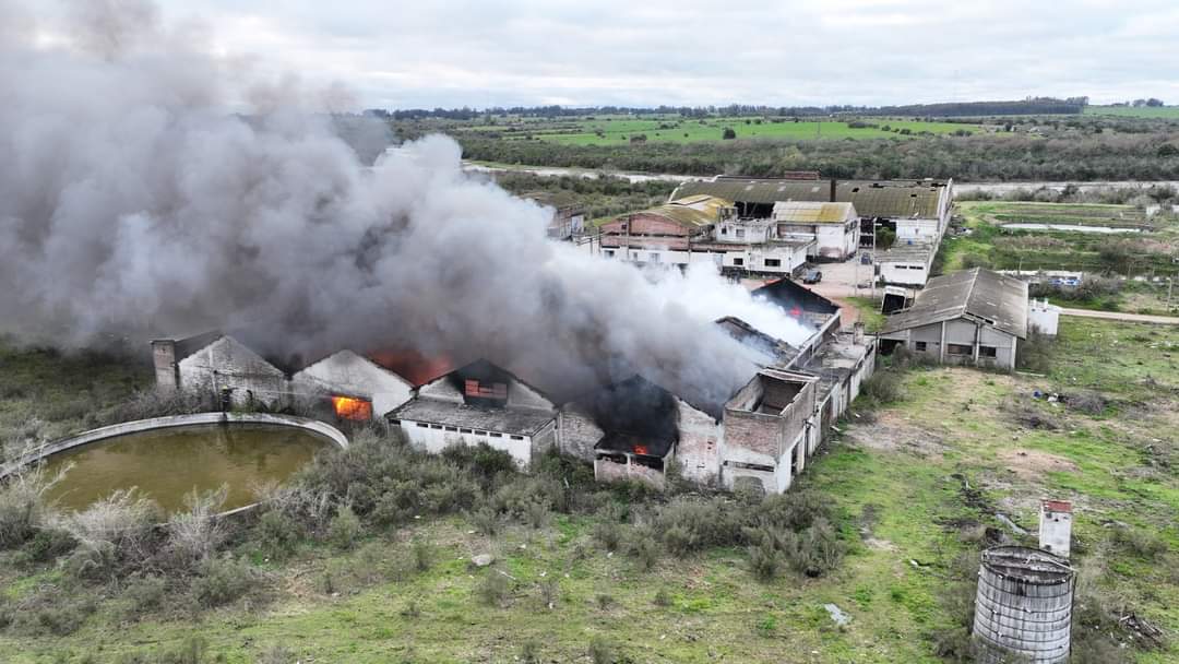 Personal del destacamento de Bomberos de Sarandí Grande trabajó hoy activamente en la extinción del incendio en la ex curtiembre de Florida, en apoyo al destacamento de ésa ciudad.