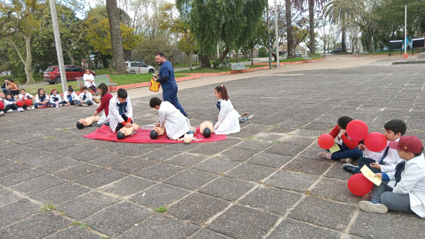 La Semana del Corazón en Sarandí Grande culminó con una marcha y un taller sobre RCP y uso del DEA en la Plaza Gallinal, marcando el final de una serie de eventos exitosos centrados en la salud cardiovascular.