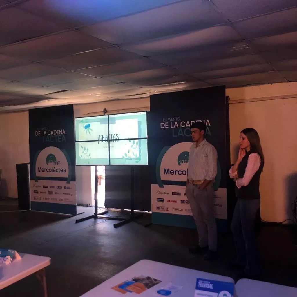 Dos alumnos de la Escuela Agraria de Sarandí Grande presentaron un proyecto denominado "Innovando en lo alto: uso de dron en nuestros sistemas lecheros", guiado la docente Anaclara Fabre, en el evento Mercoláctea 2023, que se desarrolla desde ayer hasta mañana en el predio de la Asociación Rural del Uruguay (Prado).