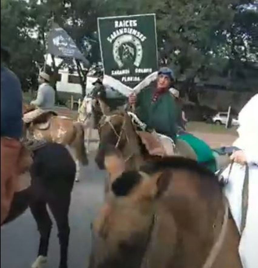 Jinetes de la Aparcería de Raíces Sarandienses participaron hoy del desfile de caballería gaucha hacia Montevideo con motivo de celebrarse un nuevo aniversario de la Jura de la Constitución. Los jinetes de Sarandí Grande se reunieron con los de la Agrupación Los Patricios del 25 de Florida para concentrarse todos a la hora 8 en el predio de la institución Potros y Palmas y marchar desde allí hacia Plaza Matriz, recorriendo distintos puntos de la capital del país.