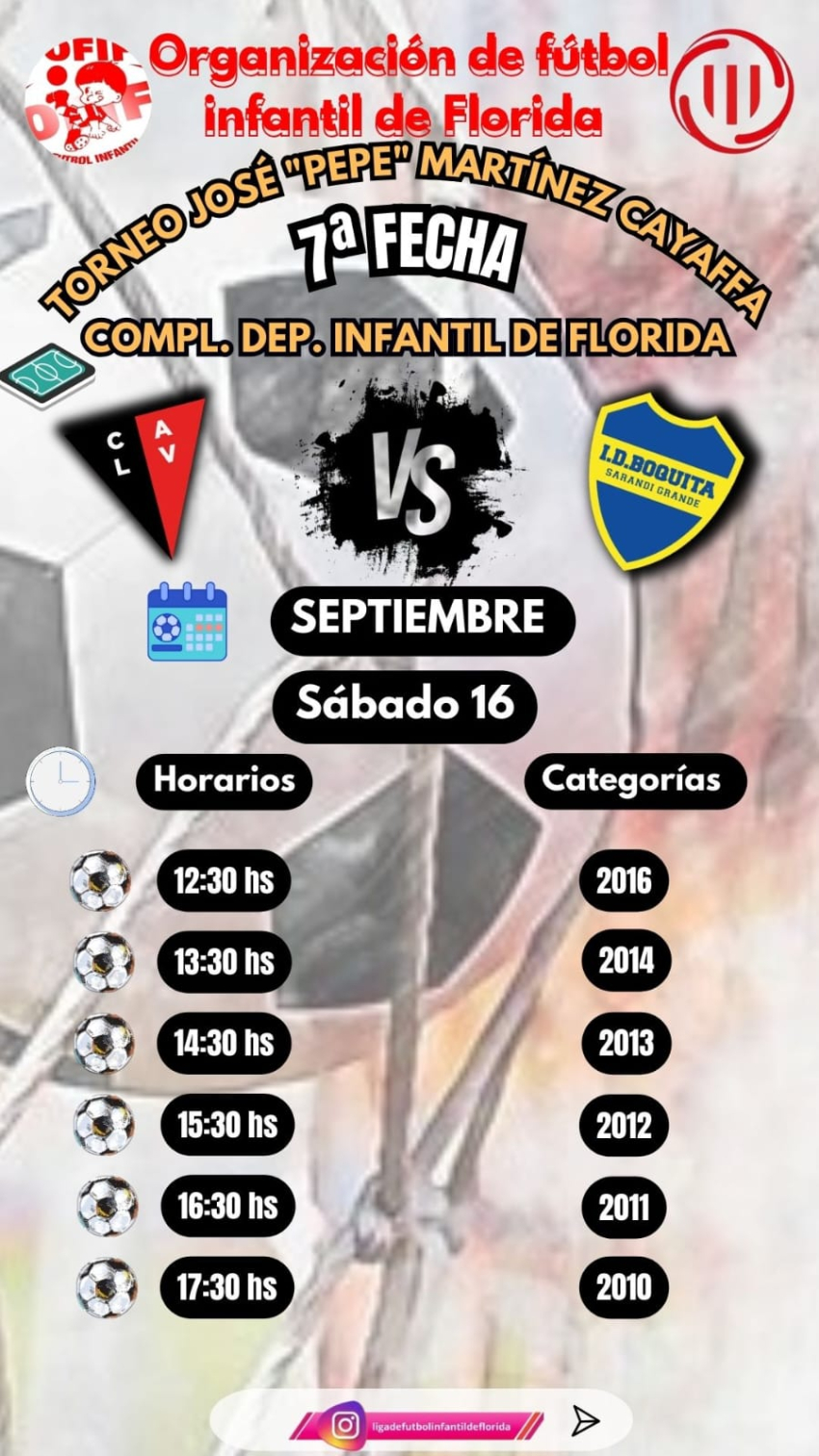 Hoy sábado 16 de septiembre, La Vascongada enfrentará a I.D. Boquita de Sarandí Grande por la 7ª fecha del Torneo José "Pepe" Martínez Cayaffa. El evento tendrá lugar en el Complejo Deportivo Infantil de Florida.