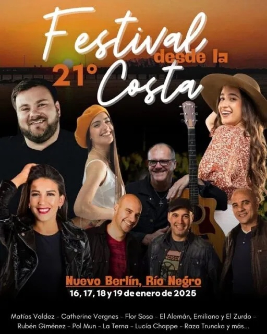 La entrada al festival será gratuita. La Comisión Organizadora del Festival "Desde La Costa", en colaboración con el Municipio de Nuevo Berlín y la Intendencia de Río Negro, invitan a todos a unirse a la celebración del 21 aniversario de este evento emblemático en la región.