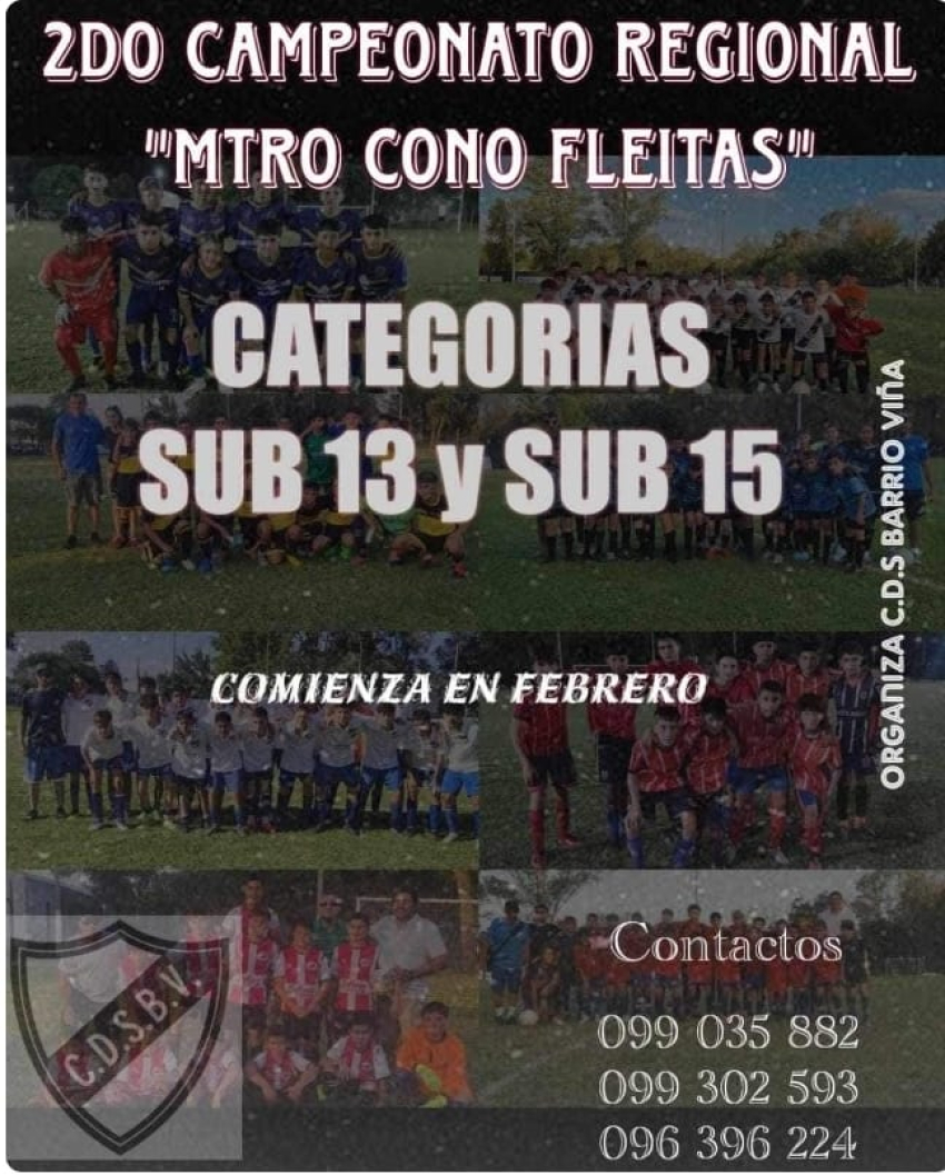 El Club Deportivo y Social Barrio Viña (C.D.S.B.V.) se prepara para dar inicio al "2do Campeonato Regional Mtro. Cono Fleitas" en las categorías Sub 13 y Sub 15. Este evento deportivo dará comienzo en el mes de febrero.