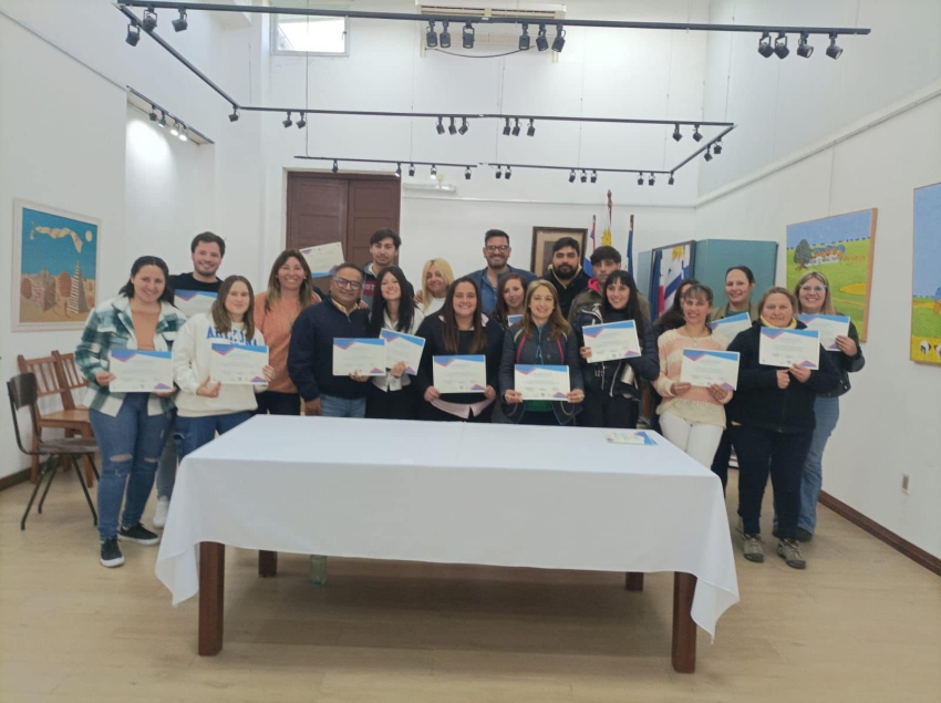 Hoy se realizó la entrega de certificados a los participantes de los talleres de Operador PC en la Escuela de Informática Digital (EID) de Sarandí Grande, por parte de los docentes Bruno Alberto Cabrera-Díaz y Gastón Rodríguez, quienes lideraron el proceso de formación, con la presencia del Alcalde Cayetano Stopingi