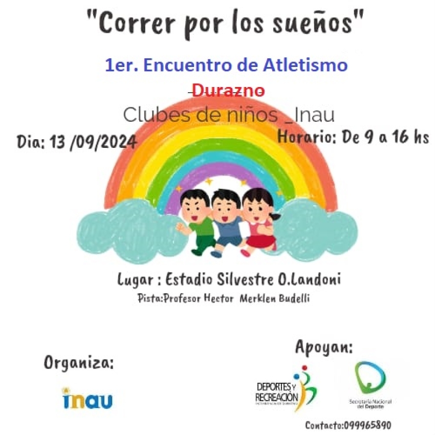El Club de Niños "Nuestras Estrellitas" de INAU de Sarandí Grande se está preparando para participar en el encuentro de atletismo "Correr por los sueños" que se llevará a cabo en el la pista "Prof. Héctor Merklen Budelli" del Estadio Silvestre O. Landoni de Durazno el viernes 13 de septiembre.