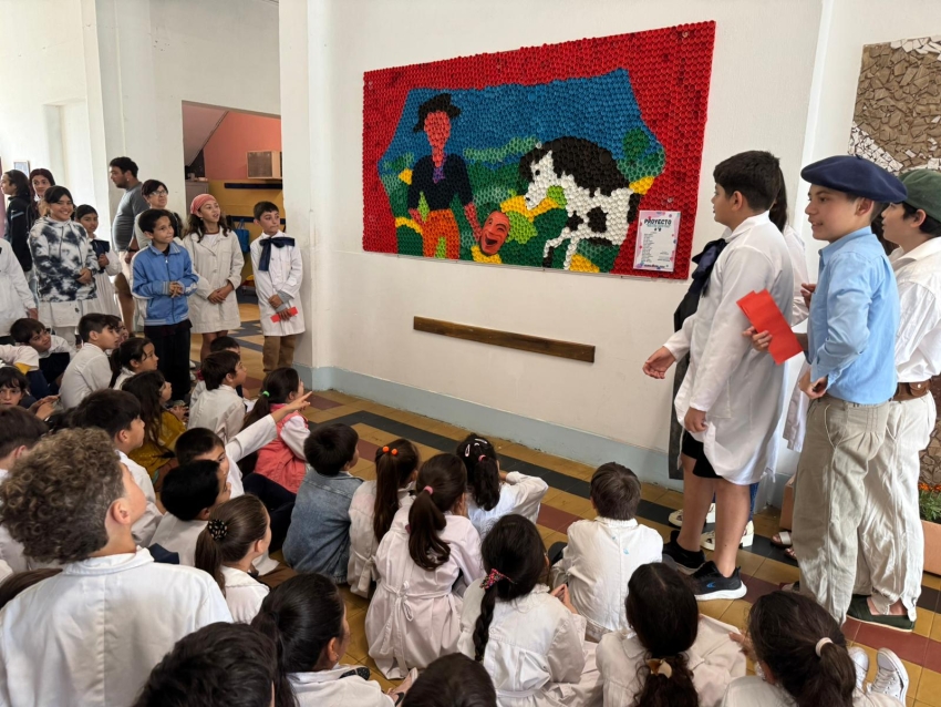 Alumnos de la Escuela N° 38 "Juan Antonio Lavalleja" de Sarandí Grande presentaron un mural elaborado con tapitas recicladas, en un esfuerzo por promover la conciencia ambiental y la empatía en la comunidad. Este mural, que forma parte de una iniciativa más amplia, fue confeccionado con el material donado por estudiantes del Liceo Faustino Harrison, quienes previamente habían realizado un mural similar.