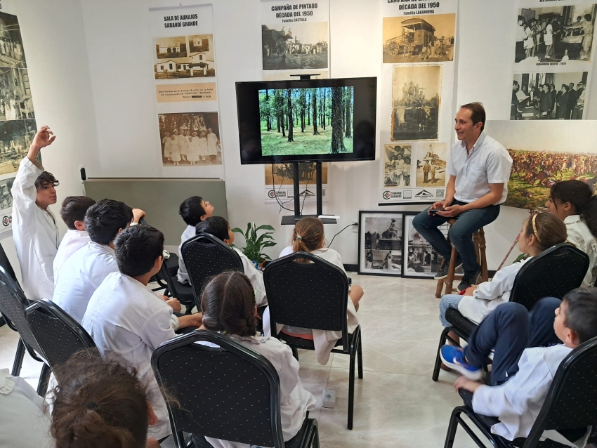 Alumnos y docentes de la Escuela N° 113 visitaron las flamantes instalaciones de Cowork Sarandí y participaron en una charla sobre la historia de Sarandí Grande ofrecida por su titular, Arquitecto Fabricio Labandera.