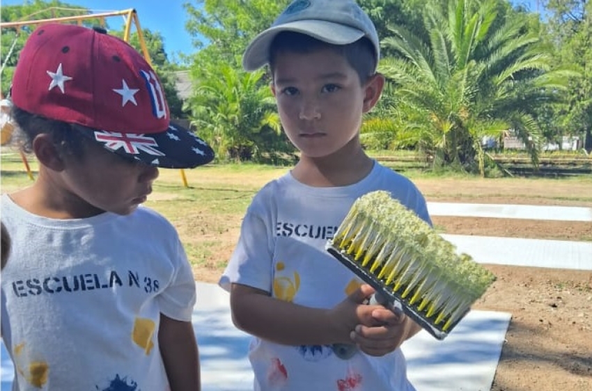 Los niños que participan del programa Escuelas de Verano en Sarandí Grande comenzaron a pintar juegos en la plaza construída en 2023 por el Club de Leones en Avda. Artigas, entre otras múltiples actividades educativas y recreativas organizadas en tres grupos por edad que incluyen clases de inglés, elaboración de camisetas identificativas, un espacio científico-matemático sobre magnitudes y medidas, y preparativos para una salida didáctica a Durazno, informó a Sarandí 365 la Directora, maestra Débora Tejeira.