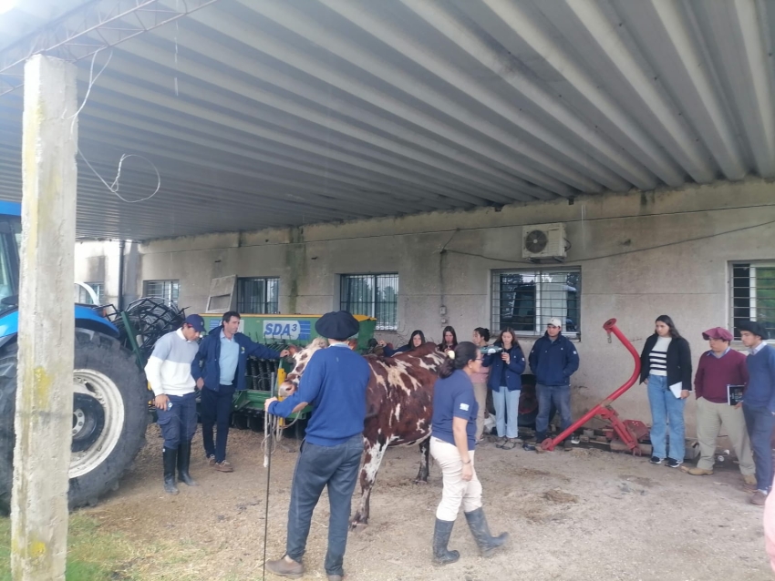 Estudiantes de primer año del Curso Técnico Terciario de la Escuela Agraria de Sarandí Grande realizaron una visita educativa a la Escuela Agraria de Durazno. Durante la jornada, la instructora Evangelina Barceló compartió con los alumnos sus conocimientos y experiencias sobre el cuidado y manejo de animales en cabaña de raza Normando, permitiendo a los jóvenes ampliar su formación práctica en producción animal y conocer de cerca las particularidades de esta raza bovina.