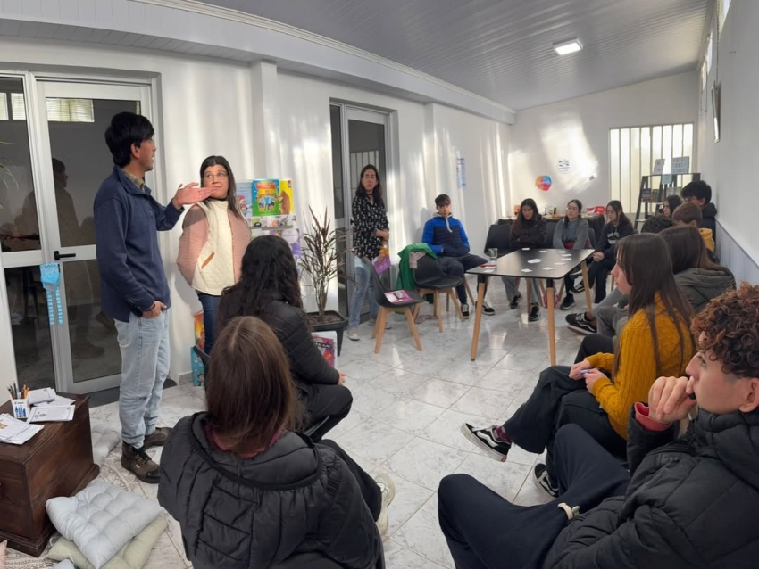 Los escritores de Sarandí Grande Fernando Segredo, quien escribe bajo el seudónimo de Nando Secreto, y Madelein Carreras, compartieron un encuentro con los estudiantes de 5° Artístico del Liceo Faustino Harrison, en una instancia celebrada en el Centro Comercial. En la ocasión, se dialogó y sobre el significado de la poesía, explorando qué representa para ellos y para los escritores. Esta actividad promovió la reflexión y el intercambio de ideas, acercando a los jóvenes al mundo de la creación poética desde una mirada cercana y participativa.