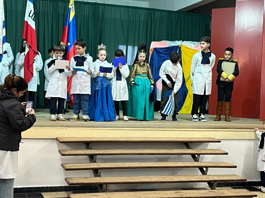 Los estudiantes ofrecieron un recorrido histórico por los hechos previos al 18 de julio de 1830, interpretando con entusiasmo y compromiso un cuadro plástico que revivió el contexto fundacional de la República, combinando narración, expresión corporal y ambientación visual.