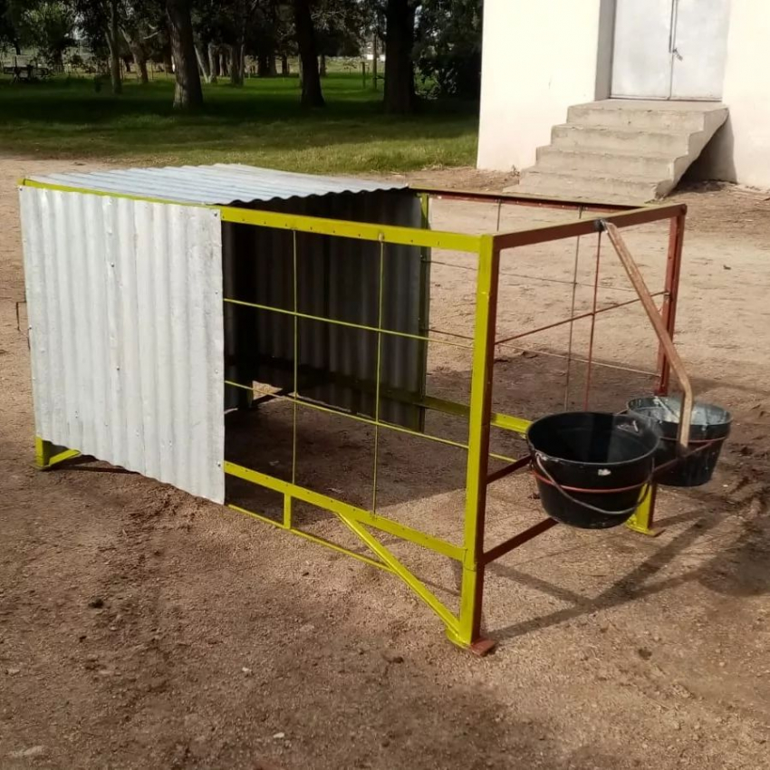 La construcción de la jaula para terneros de la Escuela Agraria estuvo a cargo del Maestro de Manualidades, Martín Viera.