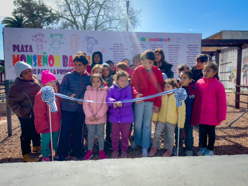 Fue inaugurada hace instantes en Sarandí Grande la Plaza Mons. José Pedro Barrera, resultado de un proyecto colectivo que contó con la participación de niños del Club de Niños "Nuestras Estrellitas" de INAU y estudiantes del Liceo Faustino Harrison.