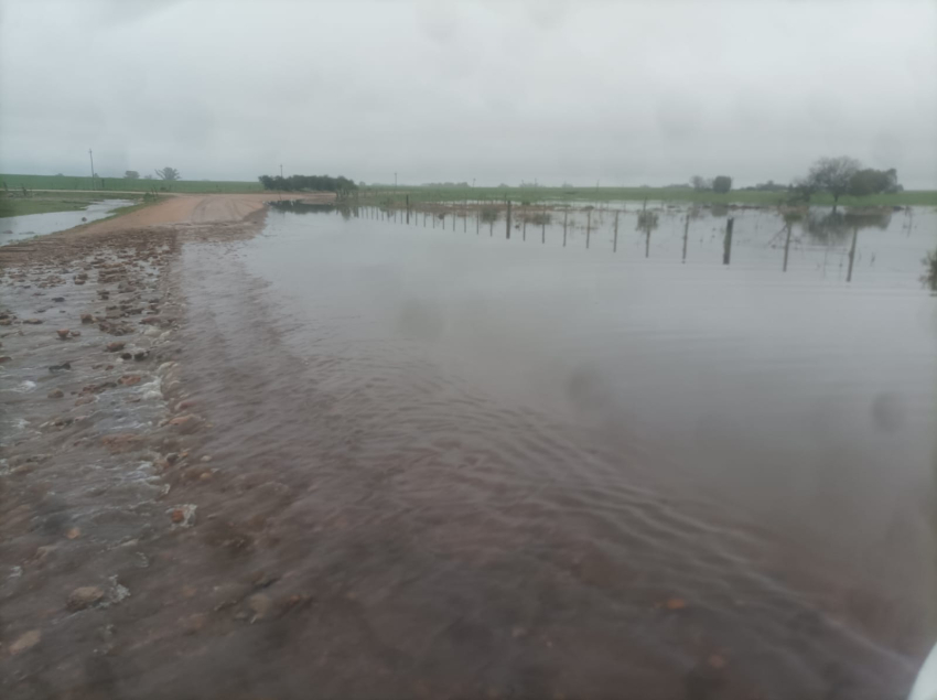El arroyo Sarandí está fuera de su cauce tras las intensas lluvias en Camino al Obelisco, en la zona de Piedras Coloradas, a escasos kilómetros de Sarandí Grande, alertaron vecinos hace instantes.