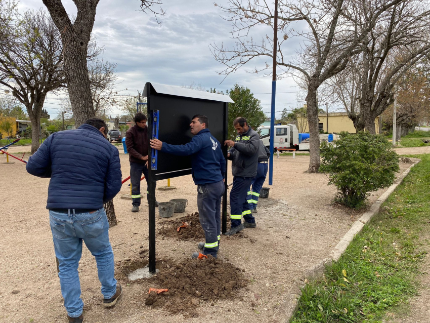 La idea es que esta galería pueda ser utilizada por las escuelas y otras organizaciones para mostrar cartelería sobre fechas especiales o actividades. Los materiales fueron donados por el Club de Leones.