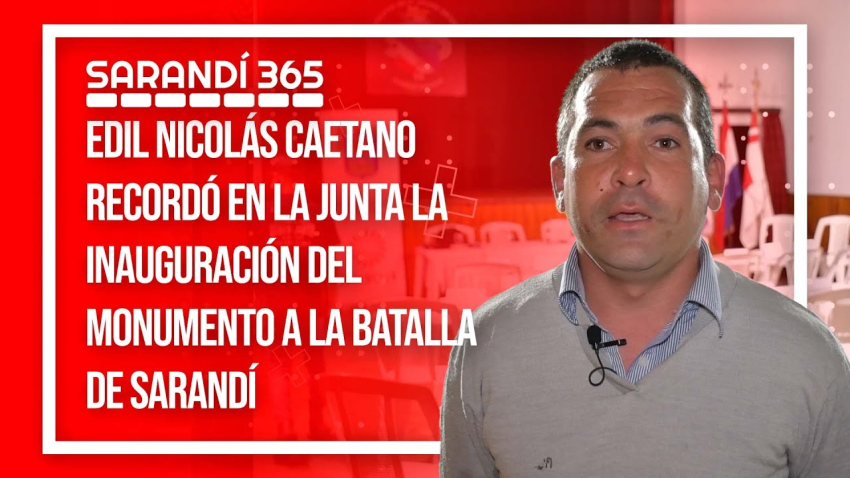 El edil Nicolás Caetano, quien propuso que la Junta Departamental sesionara en Sarandí Grande con motivo de un nuevo aniversario de la Batalla de Sarandí, realizó durante la misma una exposición para recordar la inauguración del Monumento que recuerda la gesta y que está cumpliendo en octubre sus 100 años.