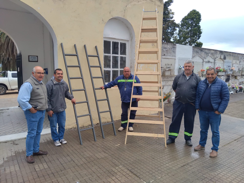 El Director de Descentralización de la Intendencia de Florida, Francisco Acerenza, entregó hoy nuevas escaleras a los funcionarios de la necrópolis local, en respuesta a una solicitud presentada hace un mes por el edil Nicolás Caetano ante la Junta Departamental.