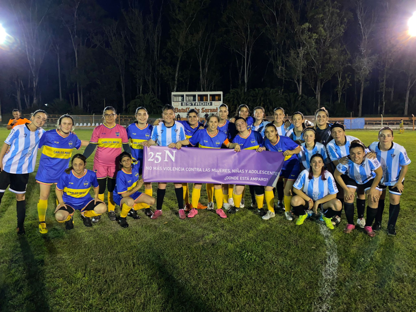 Con la presentación de un banner representativo de la víctima de femicidio Amparo Fernández en el encuentro de los equipos femeninos de Boquita vs Atlético Florida, y una intervención prevista en las letras corpóreas y otros puntos, el Colectivo Sarandí Grande se prepara para la marcha del 25 N contra la violencia hacia mujeres, niñas y adolescentes.