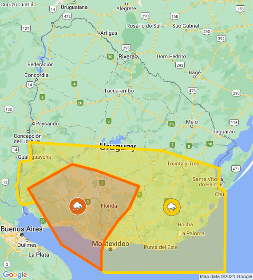 Sarandí Grande se encuentra en una zona comprendida bajo alerta naranja debido a la persistencia de tormentas y lluvias intensa, que comenzó a las 13:15 hs y se actualizará a las 15:30 hs. Una perturbación atmosférica asociada a una masa de aire húmeda e inestable está afectando la zona, lo que podría generar tormentas, algunas de ellas puntualmente fuertes. Se esperan lluvias abundantes en cortos períodos, posibilidad de caída de granizo, intensa actividad eléctrica y rachas de vientos fuertes en áreas de tormenta. Se seguirá monitoreando la situación y se informará sobre posibles cambios.