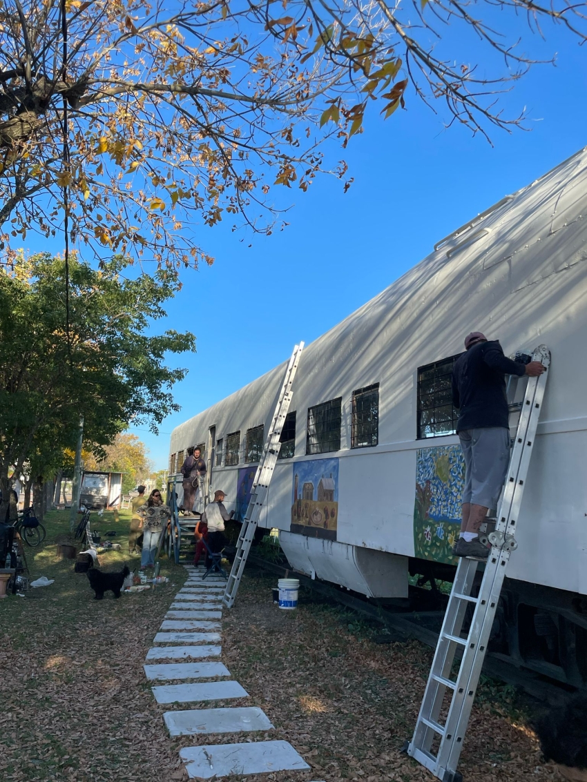 Sarandí Grande vivió una jornada especial de arte y comunidad con la realización de una pintura colectiva de murales en el vagón existente en el predio de la antigua estación de AFE, en una jornada impulsada por Espacio Multicultural "El Quilombo".