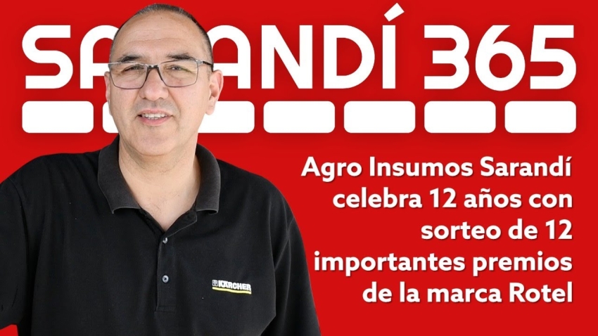 Agro Insumos Sarandí celebrará su 12º aniversario regalando 12 importantes premios, consistentes en múltiples electrodomésticos de la marca Rotel entre sus clientes y amigos a través de un sorteo que se realizará el 31 de diciembre, informó Julio Cardozo en representación de la firma, destacando que la propuesta mantiene la tradición de agregar un premio por cada año de actividad comercial.