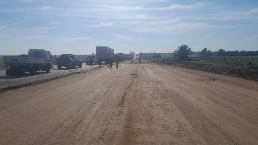 Filas de vehículos causó la interrupción, anunciada con antelación por el Ministerio de Transporte y Obras Públicas, motivada por las voladuras de rocas mediante el empleo de dinamita cumplidas en la tarde de hoy próximo a la localidad de La Cruz, en el marco de la construcción de la doble vía en Ruta 5.