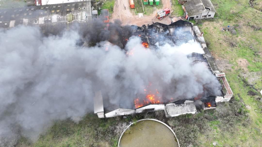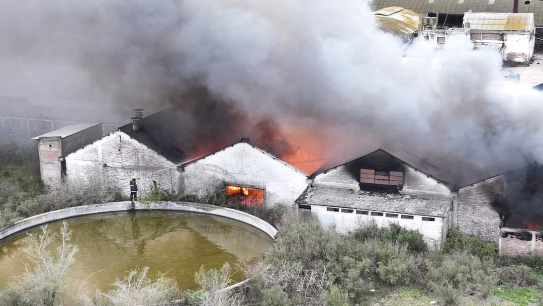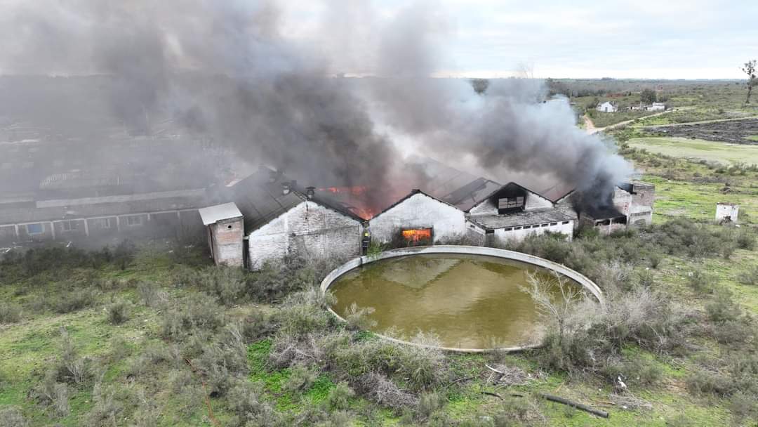 Personal del destacamento de Bomberos de Sarandí Grande trabajó hoy activamente en la extinción del incendio en la ex curtiembre de Florida, en apoyo al destacamento de ésa ciudad.