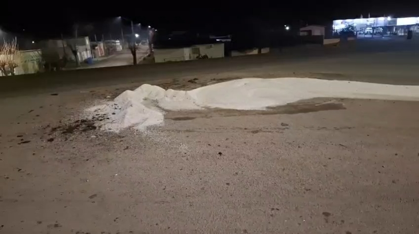 Un operativo de limpieza fue desplegado tras el derrame de fertilizante granulado tipo urea en la intersección de la Ruta Nacional Nº 5 y la Ruta Nº 42, a la altura del kilómetro 140.5, Sarandí Grande, pasada la 1 de la madrugada.