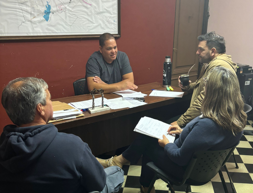Para comenzar su gestión, mantuvo una reunión con Cayetano Stopingi, la Secretaria Administrativa Alejandra Eyheralde y el capataz Mario Camilo.