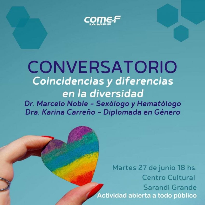 Se suspendió por razones de fuerza mayor el conversatorio denominado "Coincidencias y diferencias en la diversidad", anunciado para las 18 horas del 27 de junio en el Centro Cultural de Sarandí Grande, convocado por COMEF-IAMPP Sarandí Grande con motivo de conmemorarse el 28 de junio el Día del Orgullo LGBTIQ+; sigla universal que representa a distintas identidades y expresiones de género, y orientaciones sexuales.