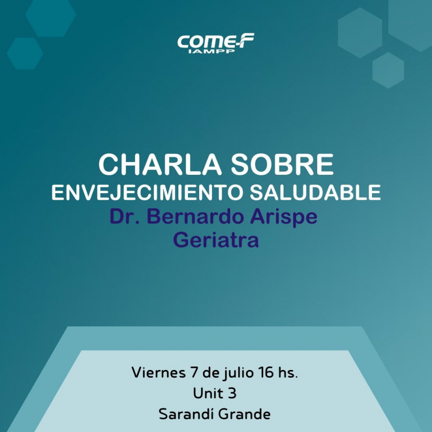 Un taller denominado Envejecimiento Saludable se llevará a cabo a la hora 16 del viernes 7 de julio en la sede de Uni 3 en Sarandí Grande, brindado por ésa institución y COMEF-IAMPP Sarandí Grande.