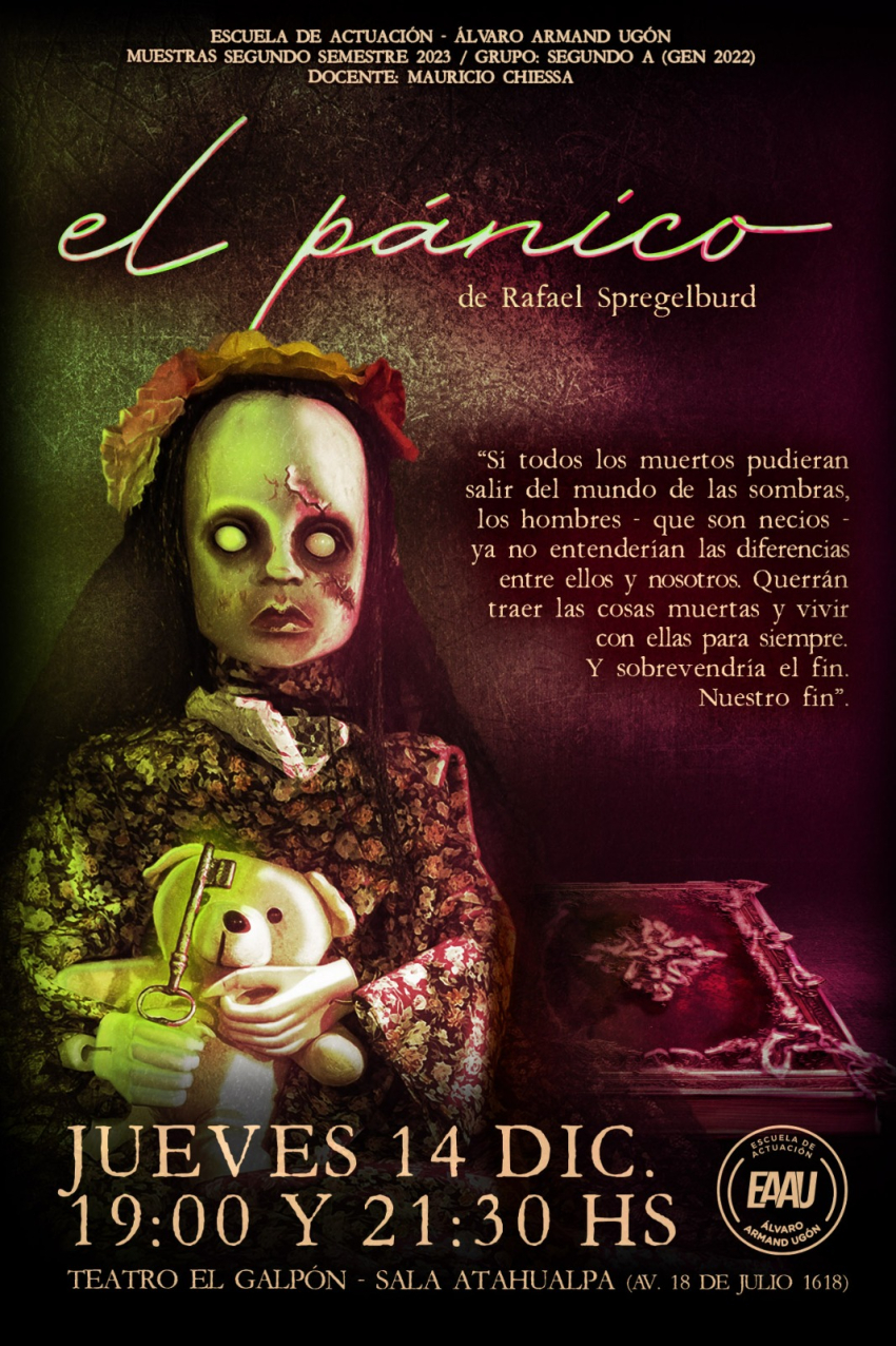 El actor oriundo de Sarandí Grande, Valentín Peraza León, participará en la obra "El Pánico" de Rafael Spregelburd. La presentación será el jueves 14 de diciembre a las 19:00 y 21:30 horas en el Teatro El Galpón Sala Atahualpa (Av. 18 de Julio 1618). Se organiza un viaje en micro desde Sarandí Grande con un costo de $1050, que incluye pasaje ida y vuelta y entrada. Hay 17 plazas disponibles, y hasta ahora, 10 están confirmadas. Para consultas y reservas, contactar al 098042470. ¡No te pierdas la destacada actuación de Valentín Peraza León en esta imperdible obra teatral!
