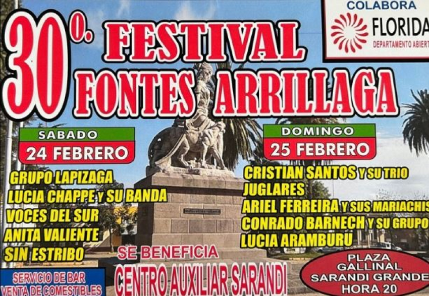 Hoy y mañana, la Plaza Gallinal de Sarandí Grande recibirá al Festival a beneficio del Hospital local, en honor al Pbro. José María Fontes Arrillaga.