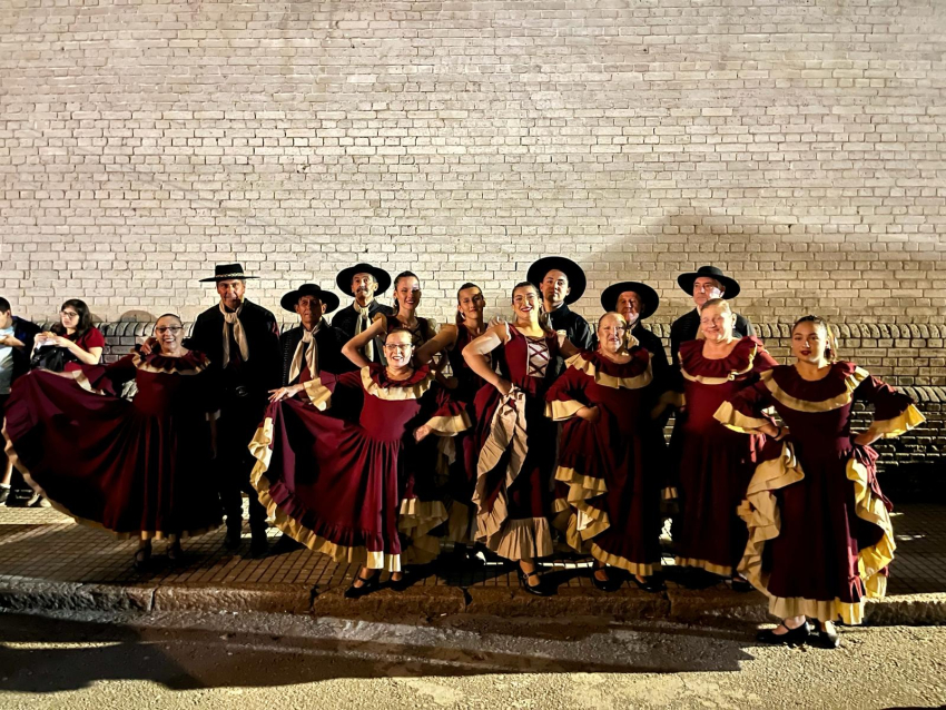 El Grupo de Danzas de la institución "Raíces Sarandienses" de Sarandí Grande se presentó anoche en el fogón de El Alero del Prado de Montevideo, como parte de la Semana Criolla 2024. Durante la actuación, interpretaron diversas danzas folclóricas, entre ellas la chacarera "Déjame que me vaya" de José Damiani y Anita Valiente, la chamarrita "Ruta Siete" interpretada por Jorge Nasser, y la polka "La Cervecera" de Lucía Chappe. Los bailarines y bailarinas que participaron en la presentación fueron Silvia Torena, Roberto Moreira, Carlos Gómez, Rubén Sastre, Susana Cabrera, Morena Mateo, Camila Velasco, Manuel González, Anahí Viñoles, Hugo Aramburu, Hugo del Río, Cristina Céspedes y María González.