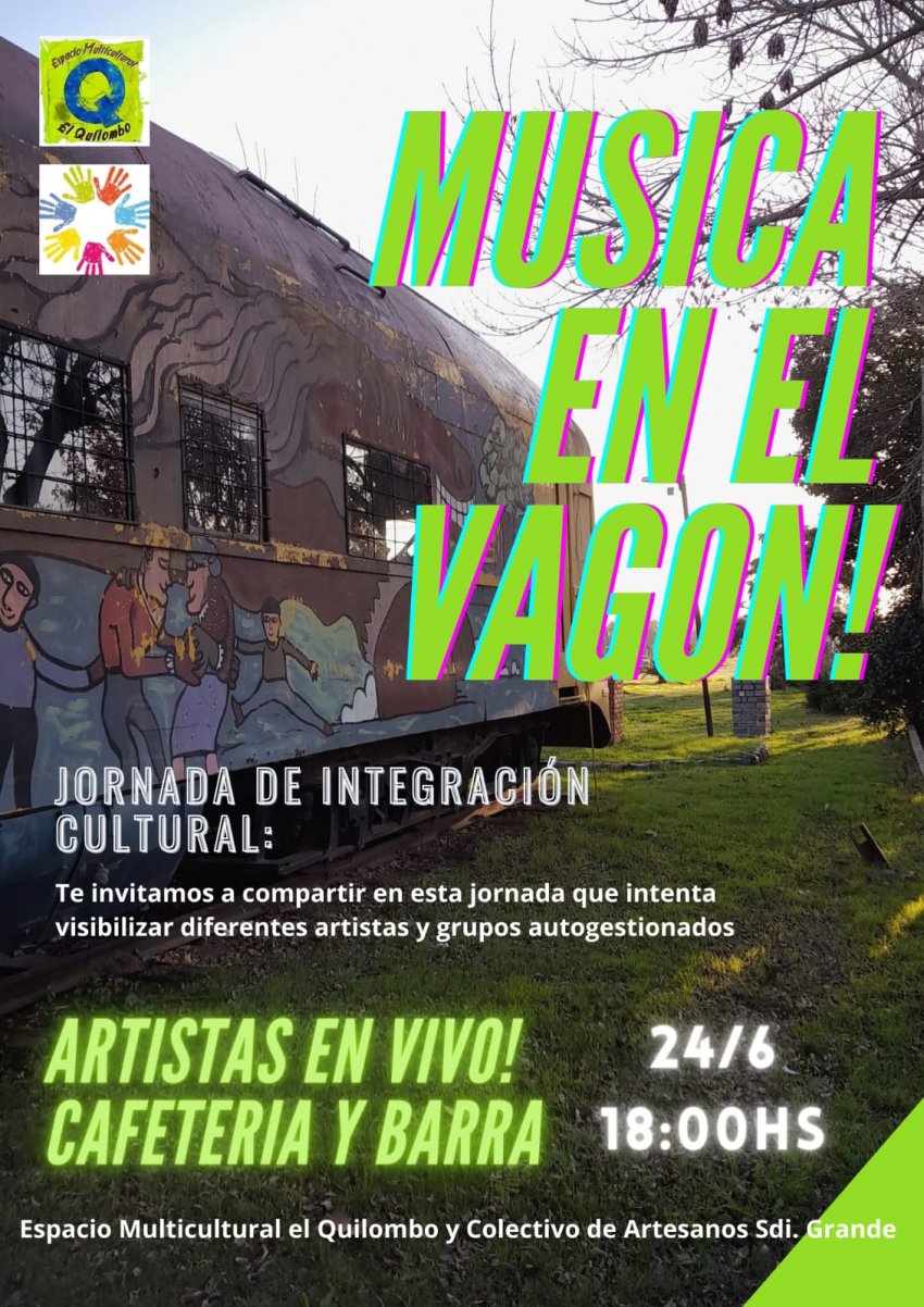 Una jornada de integración cultural se desarrollará a partir de las 18 hs del sábado 24 de junio en el Vagón de los Artesanos, ubicado junto a la antigua Estación AFE de Sarandí Grande. Para la ocasión está prevista la presentación de distintos artistas y grupos. La actividad es organizada por Espacio Multicultural el Quilombo y Colectivo de Artesanos Sarandí Grande.