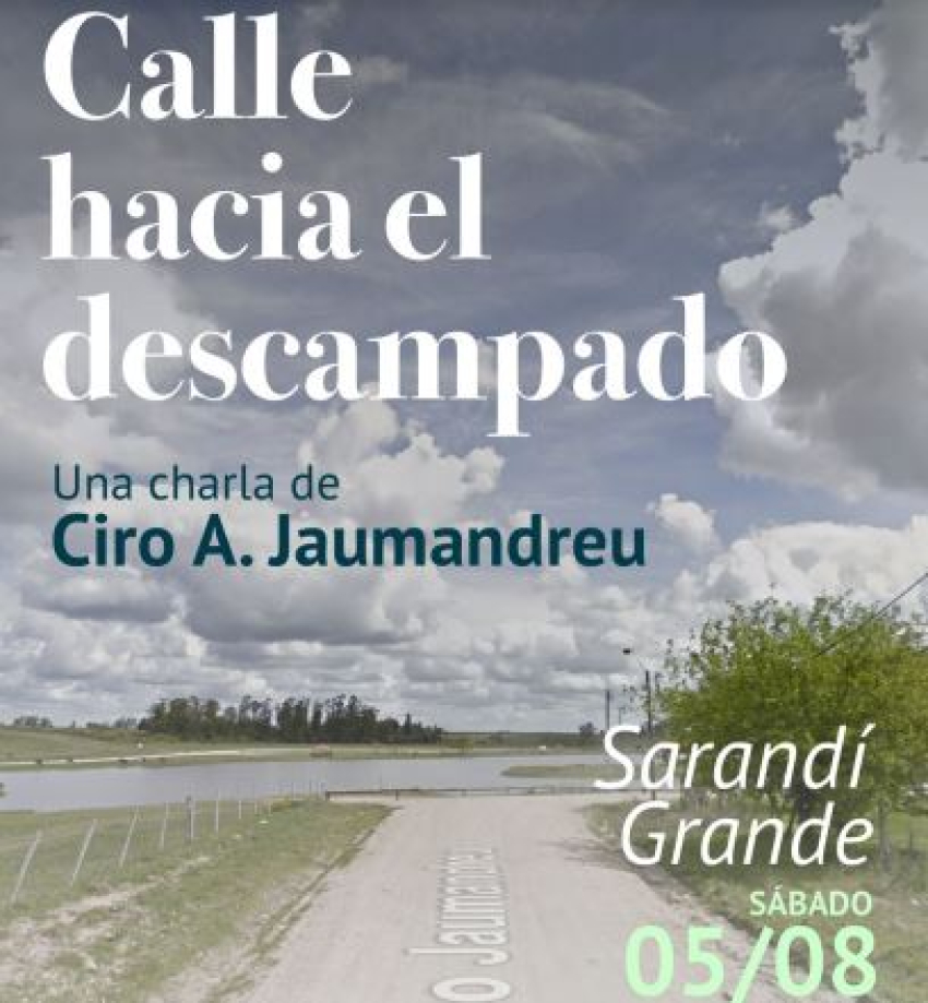 El artista visual Ciro A. Jaumandreu, bisnieto de quien diera nombre a una de las principales calles de Sarandí Grande, que se extiende desde la vía del tren hasta el Parque Tomás Berreta, brindará el 5 de agosto en el Centro Cultural una charla abierta denominada "Calle hacia el descampado" en la que compartirá aspectos de la historia de su familia y su relación con la ciudad; así como su obra artística y la conexión de ésta con la tierra.