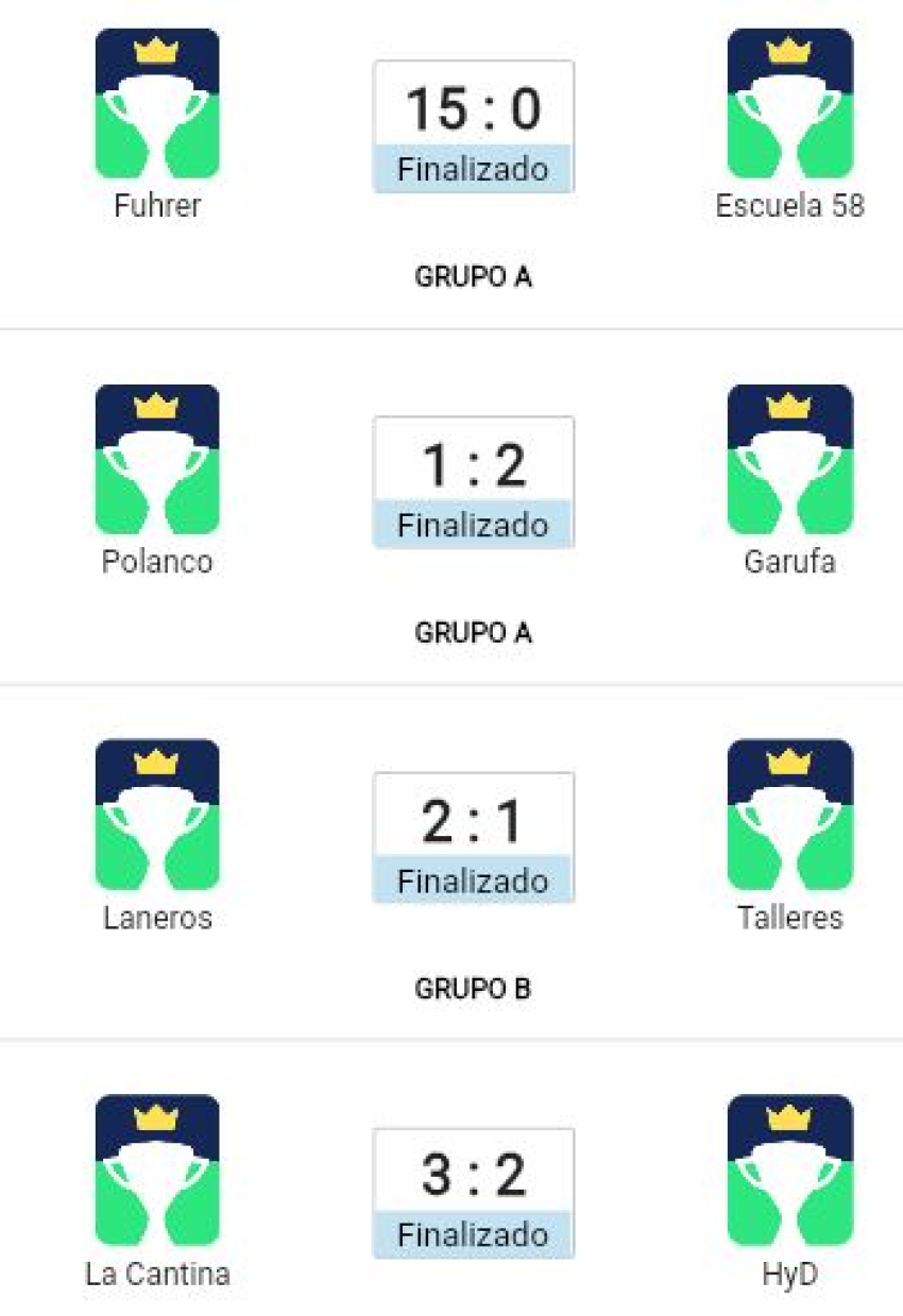 Fuhrer y Garufa en Grupo A, y Laneros y La Cantina en el B se impusieron en sus partidos en el Campeonato Barrial de Sarandí Grande. Fuhrer ganó 15 a 0 a Escuela 58, Garufa 2 a 1 a Polanco, Laneros 2 a 1 a Talleres, y La Cantina 3 a 1 a HyD.